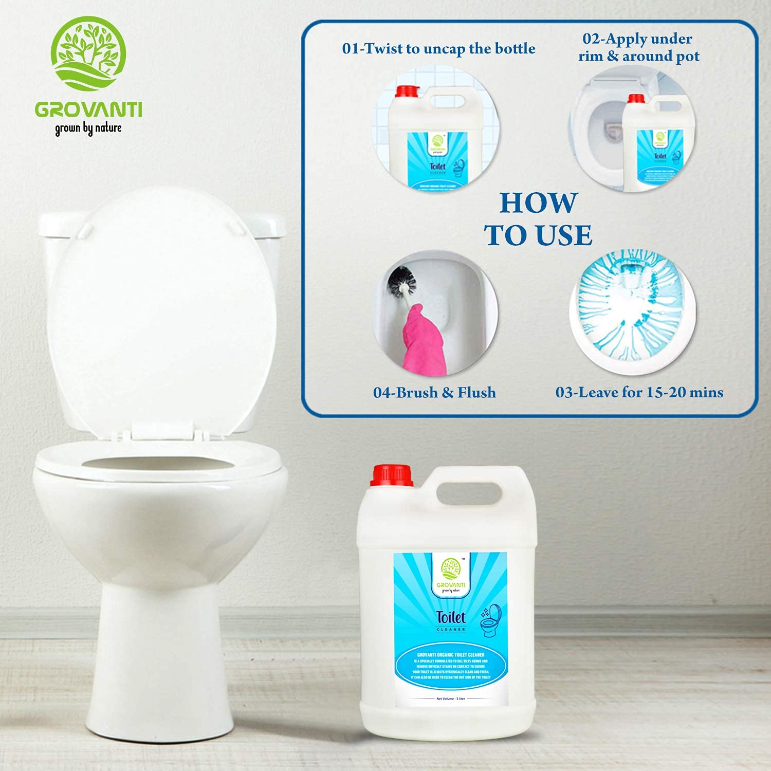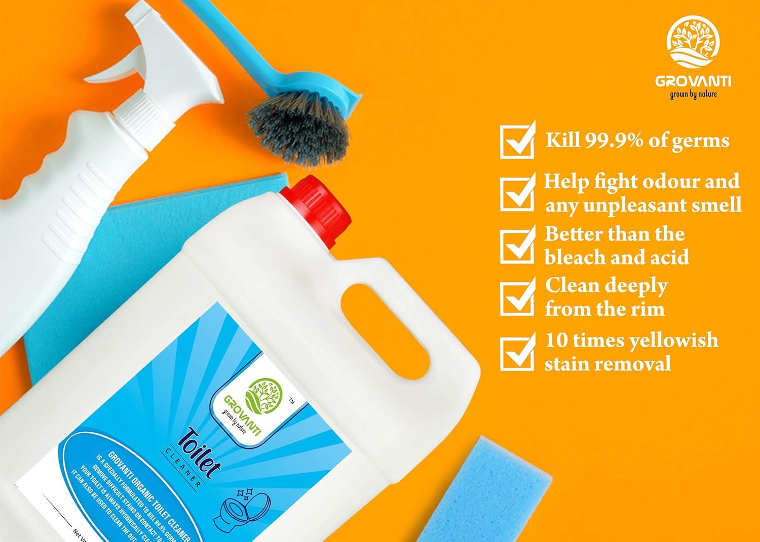- Grovanti Disinfectant Toilet Cleaner is 1.5X stronger than ordinary toilet cleaners ,Its advanced thicker formulation makes the toilet extraordinary clean and gives shine like new.