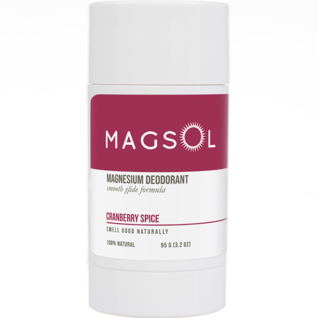 MAGSOL magnesium deodorant is a truly clean label deodorant that is gentle on skin and actually works. Cranberry Spice MAGSOL Deodorant 3.2 oz made with 4 natural ingredients. Made with magnesium oxide to control odor.