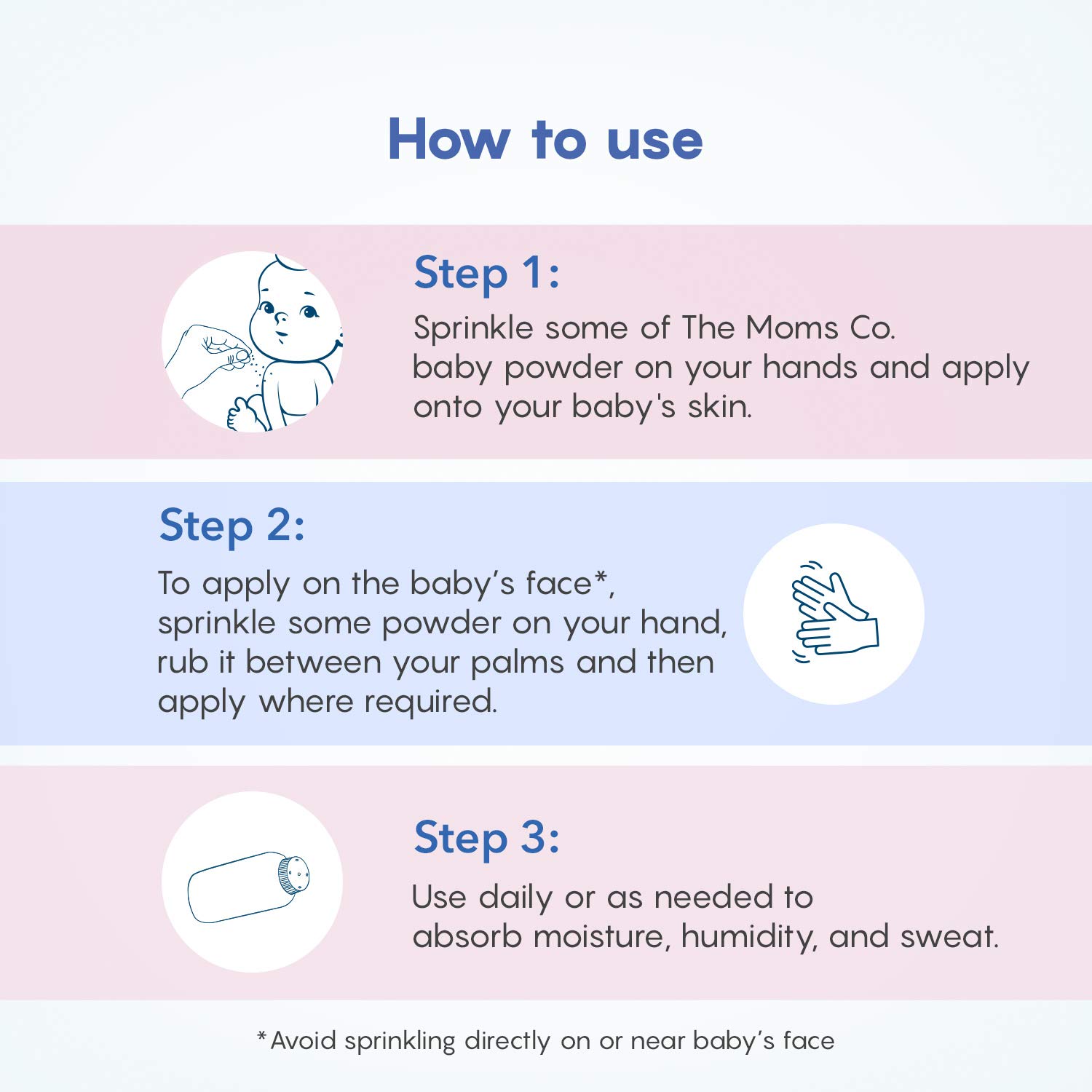 The Moms Co. Natural Baby powder is enriched with Organic Chamomile Oil which has been used as a traditional medicine for thousands of years for its calming properties, rapid wound healing, and for reducing inflammations.