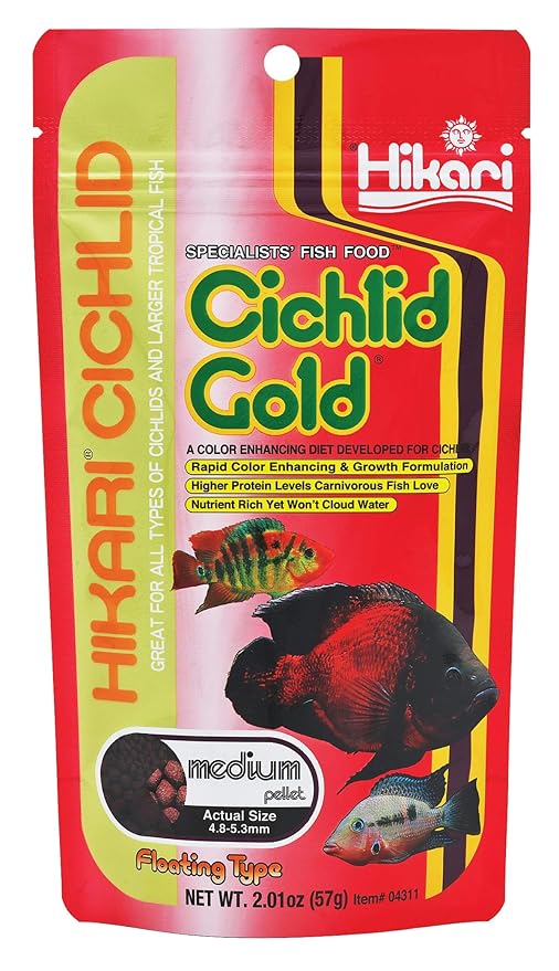 This Hikari Cichlid Gold Specialists’ Medium Pellet Fish Food is a nutrient and protein-rich diet for