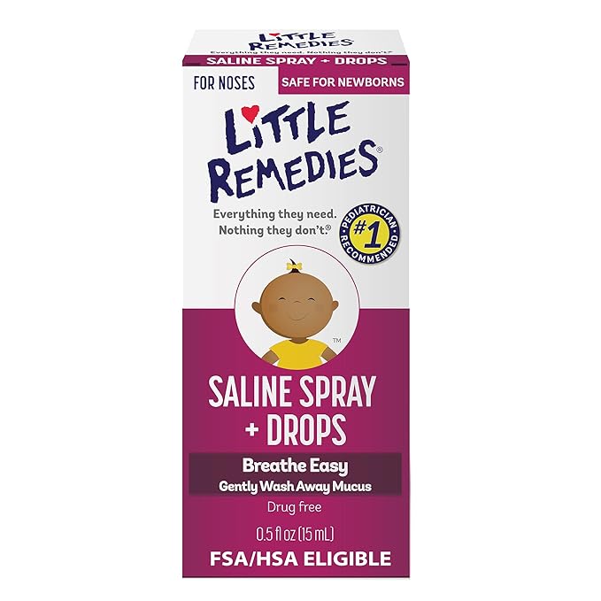 When stuffy noses cause breathing discomfort for your baby, Little Remedies Saline Spray and Drops provide
